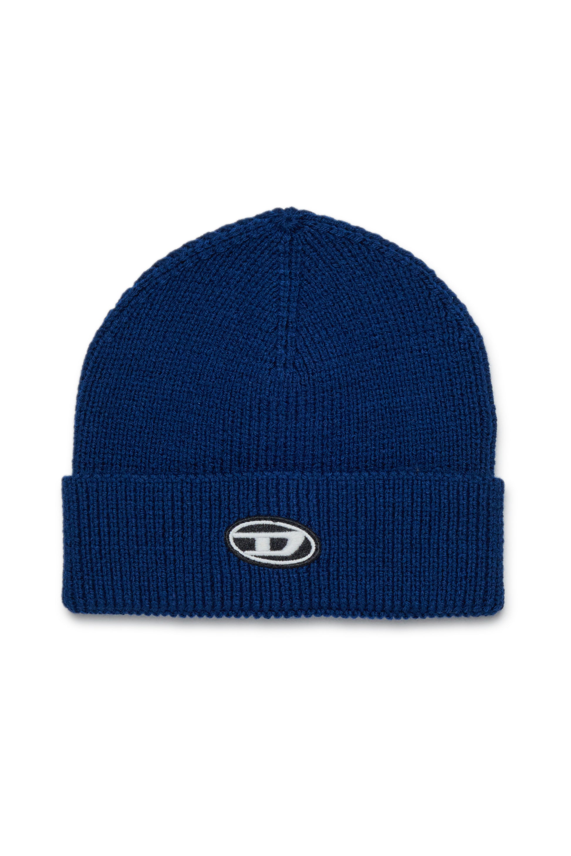 Wool-blend beanie with patch Oval D